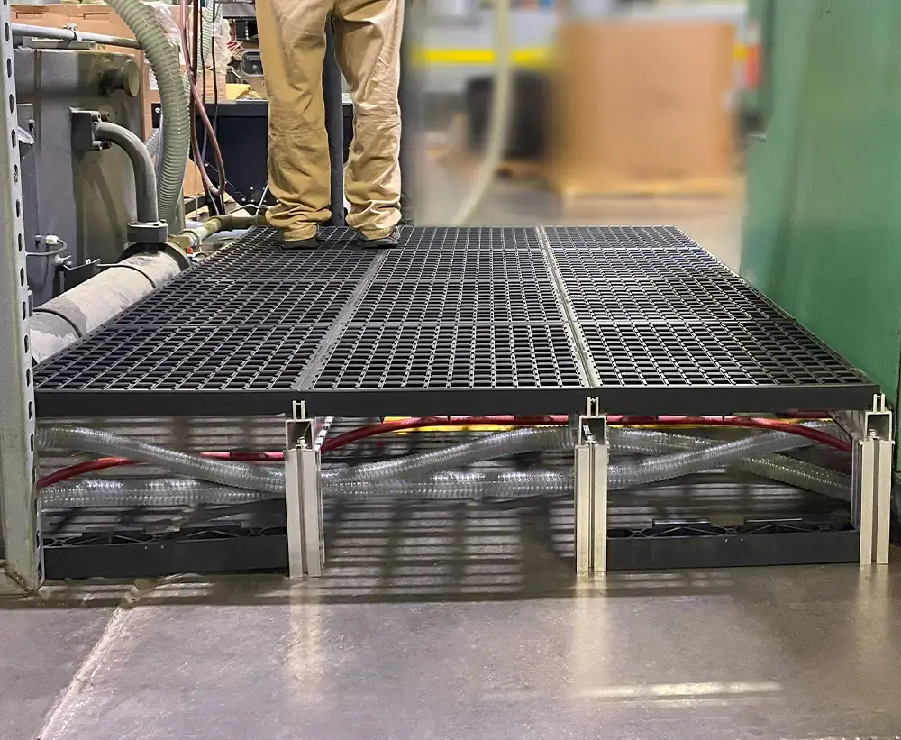 Sistema modular que se adapta a cualquier espacio de trabajo. Proporciona confort ergonómico, absorción de impactos y facilidad de mantenimiento.