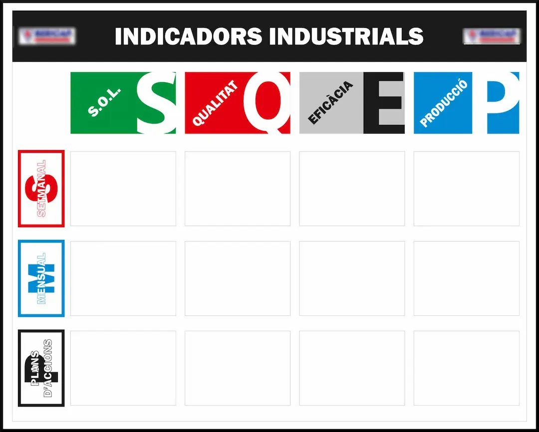 Proyectos integrales de marcaje de suelo, señales preimpresas para suelo, pizarras Lean y KPI a medida, además de jornadas de formación y capacitación, para su implantación.