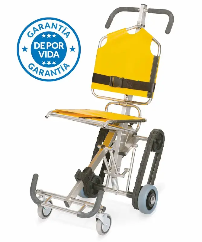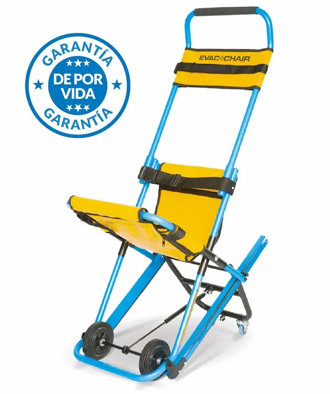 La EVAC+CHAIR modelo 500H es un dispositivo que permite la salida segura de un edificio bajo una situación de emergencia o evacuación a personas con movilidad reducida. La EVAC+CHAIR mejorada para ser operada por una sola persona, un incremento en el peso del pasajero a 226.80 kg y para su uso en escaleras empinadas (hasta 45°)