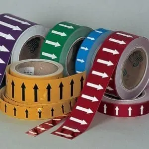 Ofrecemos cinta adhesiva para tubería, cinta con flechas de dirección de flujo y tarjetas de flechas para ayudar a crear mayor visibilidad e identificar el flujo de las tuberías. Estas cintas y tarjetas para marcaje de tuberías están disponibles en duraderos materiales diseñados para resistir algunos de los ambientes más agresivos. También le ayudarán a cumplir con las normas de color de ANSI.