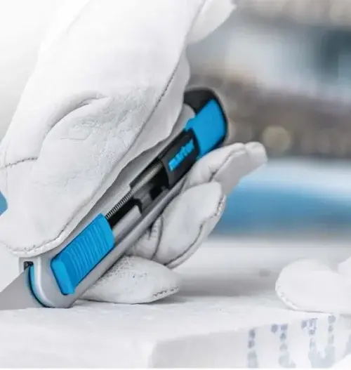 En el SECUMAX 350, la versatilidad, la comodidad y la máxima seguridad van de la mano. El SECUMAX 350 es realmente multi-talento e incluso propone un cambio de la hoja innovador. Puede cortar todos los materiales comunes, desde film a flejes de plástico y cajas de cartón de doble capa. También corta fácilmente cintas adhesivas. Y aún más: el trabajo es muy placentero.