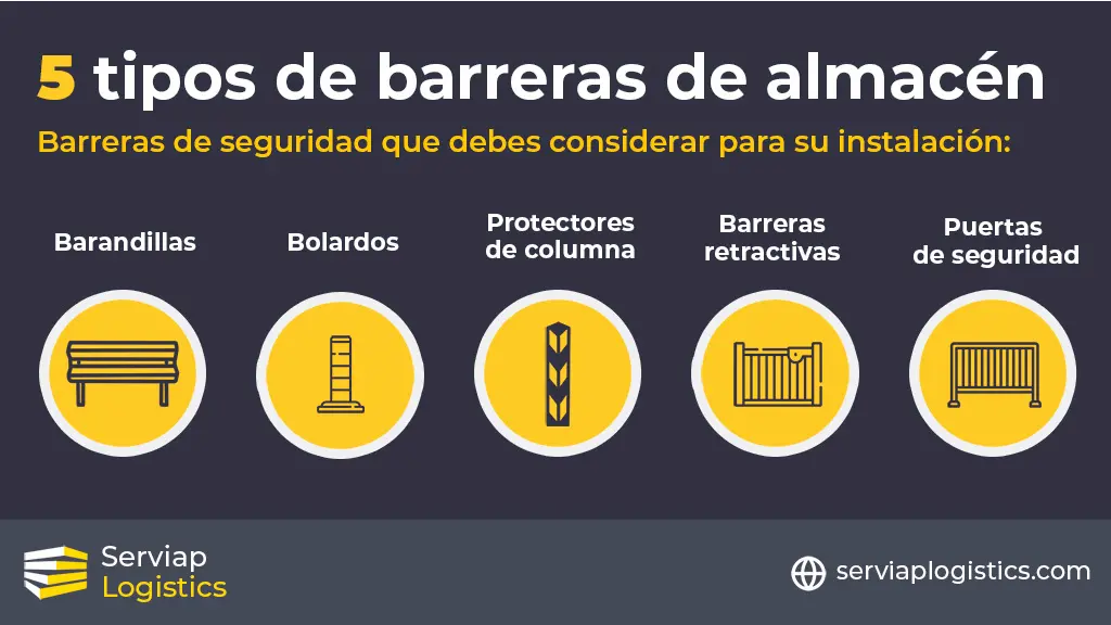 Dependiendo de tus necesidades, hay muchos tipos de barreras de seguridad para almacenes que pueden instalarse, y a continuación se destacan cinco de los más utilizados.